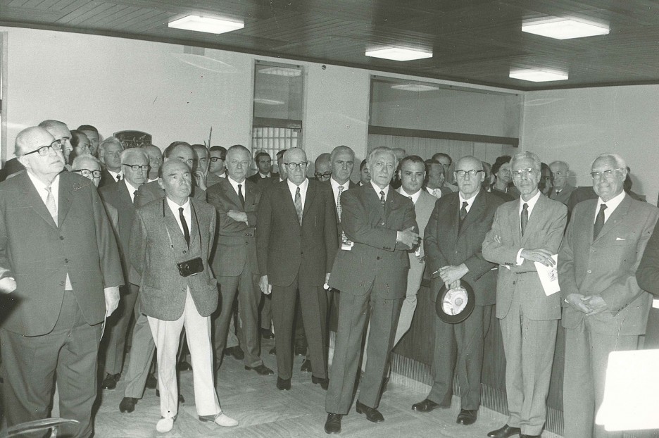 All'estrema destra: il Rag. Lino Ziller, già Sindaco di Bolzano ed infine il Comm. Giuseppe Kettmeir, membro del consiglio di amministrazione della Cassa di Risparmio