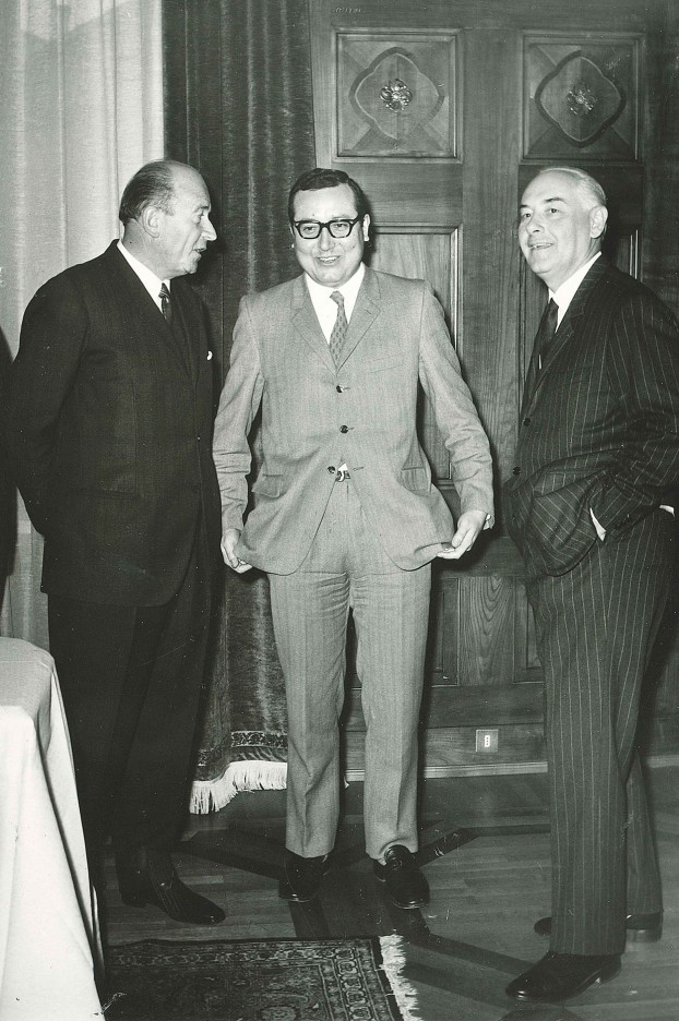 12.11.1970. Al centro il Sindaco di Bolzano dott. Bolognini tra il Presidente ed il Direttore Generale della Cassa di Risparmio