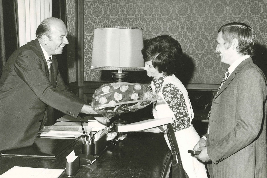 24.08.1971. Il presidente della Cassa di risparmio, avv. Brandstätter celebra formalmente con una giovane coppia la stipula della 1000° convenzione edilizia