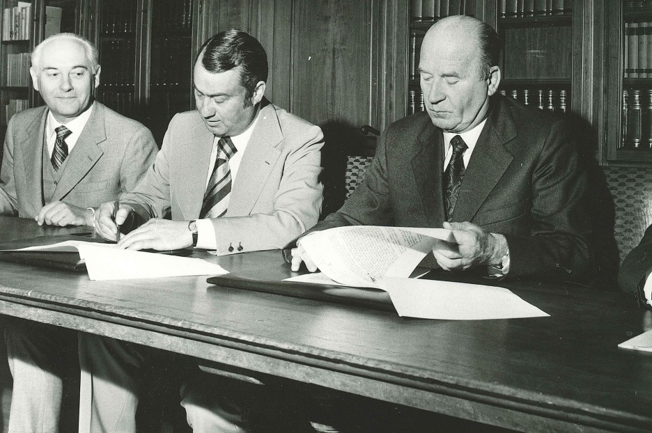 17.05.1973. Alla firma, al centro, il Presidente dell'Unione Provinciale di categoria e socio, Sig. Arthur Eisenkeil